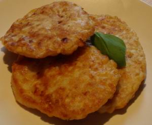 4) Fry ladlefuls of mixture, flattening out with the ladle. Wait until you see bubbles rising to the surface before you carefully turn the fritters over.